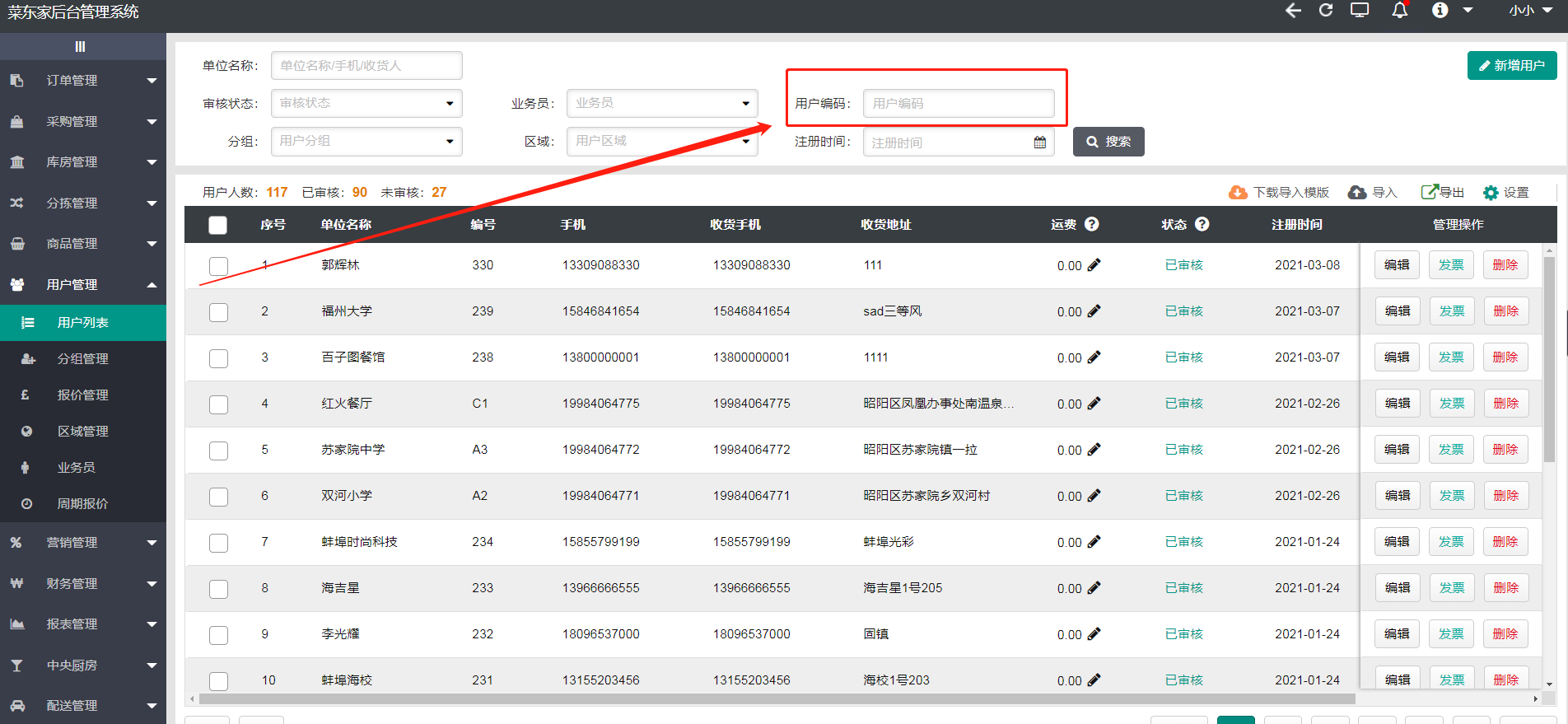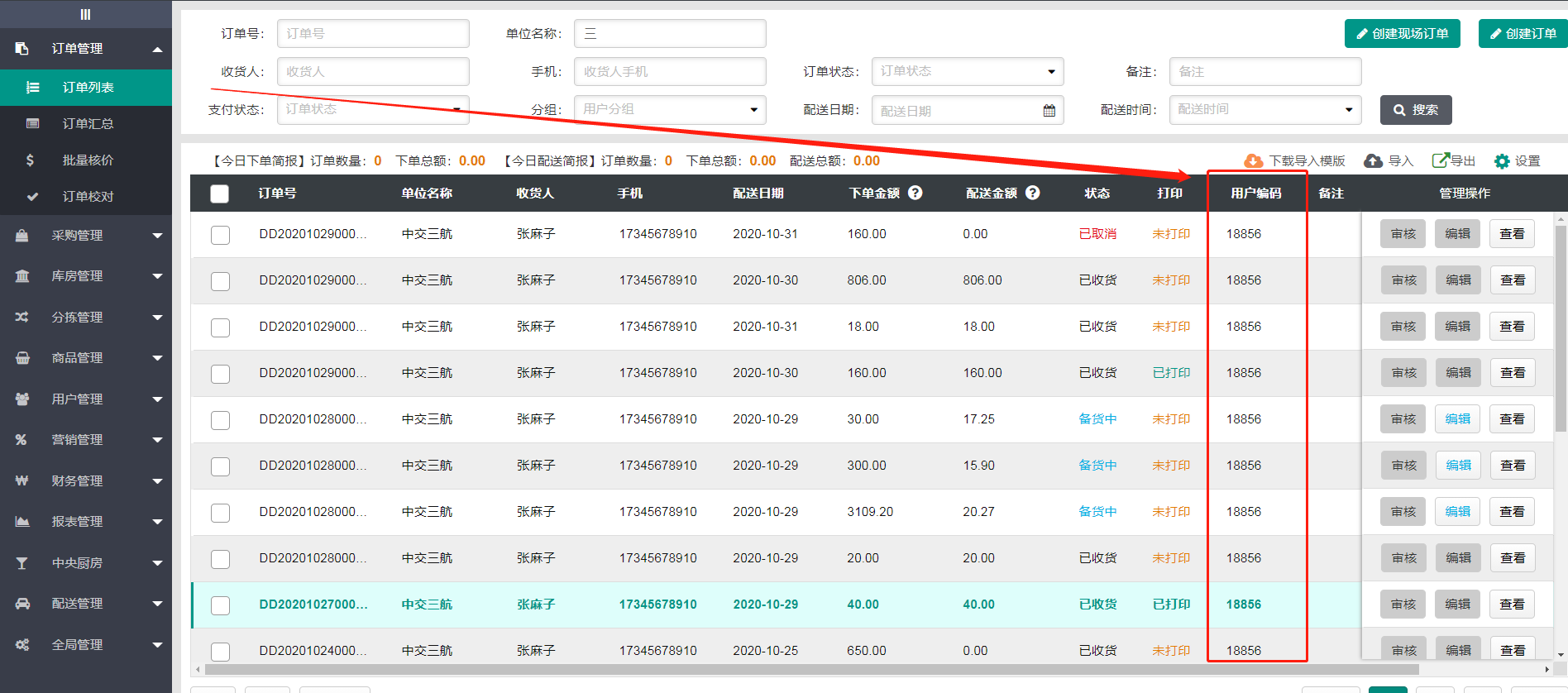 【新增功能一】訂單列表、導(dǎo)出訂單、打印訂單新增用戶編碼字段。多維度展示用戶編碼
