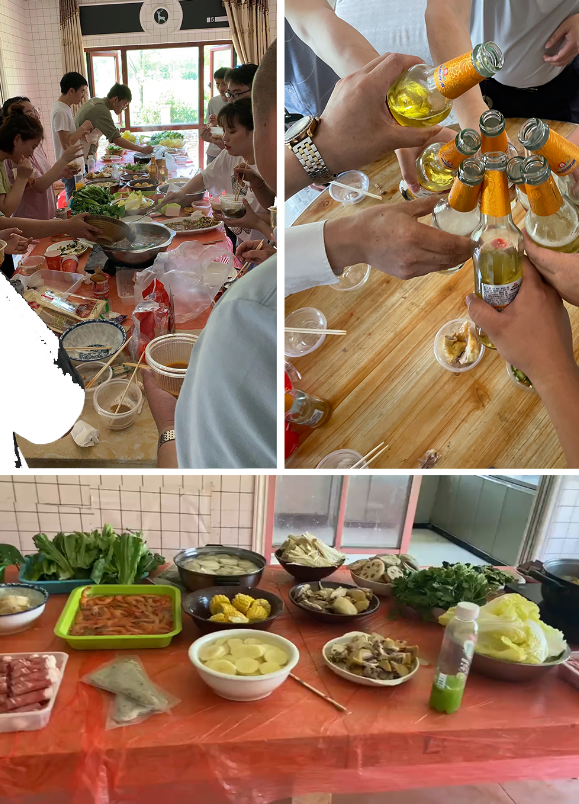 伴著梅嶺上陣陣微風(fēng),一股股菜香氣迎面而來,小伙伴們都迫不及待想吃了 。開吃啦!自助火鍋、美菜、啤酒、伴著同事們的你說我笑愉快的的午餐進行著......