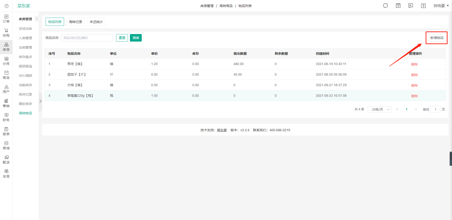 5、新增所需要的周轉(zhuǎn)物品