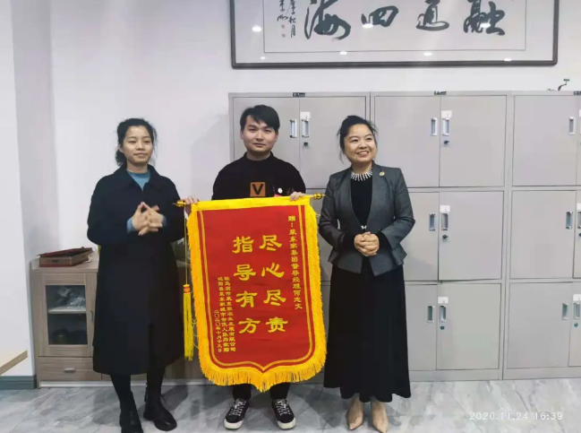 在協(xié)助張總發(fā)展業(yè)務(wù)的過程中,何志文同事盡心盡責(zé),全方位服務(wù),從場地搭建開始,到人員培訓(xùn),從市場的分析到話術(shù)的指點(diǎn)等服務(wù)工作都細(xì)心指導(dǎo)。在張總市場資源有限的情況下,何志文同事全力以赴協(xié)助張總一起地推尋找客戶,開拓市場,經(jīng)過幾番波折,最終順利協(xié)助談下一單丑小鴨幼兒園集團(tuán)(下有5家分園)業(yè)務(wù);在長期進(jìn)行一對一的緊密跟蹤服務(wù)后,張總團(tuán)隊(duì)進(jìn)入穩(wěn)定發(fā)展?fàn)顟B(tài)。為表感激,河南駐馬店城市合伙人贈(zèng)送何志文“盡心盡責(zé),指導(dǎo)有方”錦旗一面。